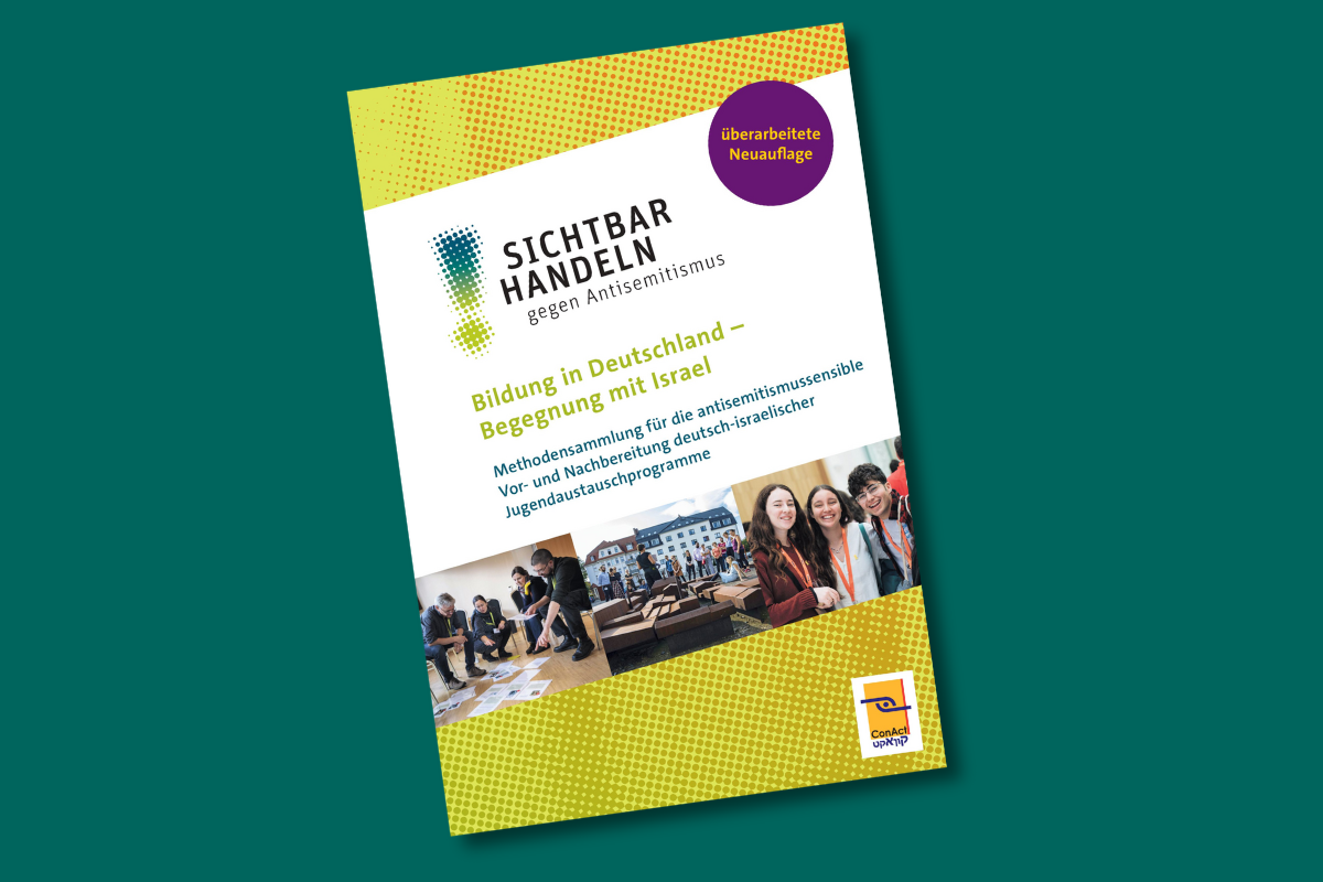 Die neu aufgelegte, 2025 überarbeitete Methodensammlung von ConAct im Rahmen des Projekts „Sichtbar Handeln! Gegen Antisemitismus.“ bietet Fachkräften der deutsch-israelischen Bildungs- und Jugendaustauscharbeit aktualisierte Methoden für eine antisemitismussensible Vor- und Nachbereitung von Austauschprogrammen. Die erweiterte Publikation richtet sich an Pädagog*innen, die Jugendlichen ab 14 Jahren fundiertes Wissen über historische und aktuelle Formen des Antisemitismus vermitteln und auch jüdische Perspektiven näherbringen möchten. Ein besonderer Fokus liegt auf der pädagogischen Bearbeitung der Ereignisse vom 7. Oktober 2023 und deren Folgen. Ergänzt wird die Sammlung durch Materialien, Projektbeispiele und praktische Hinweise für die Arbeit gegen Antisemitismus.