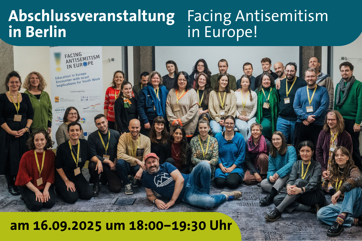 Vom 15. bis 17. September 2025 fand in Berlin das Abschlussseminar des internationalen Projekts „Facing Antisemitism in Europe!“ statt. Rund 50 Teilnehmende aus sechs Ländern kamen im Laufe des Projekts zusammen, um gemeinsam neue Perspektiven und Ansätze gegen Antisemitismus in der europäischen Bildungsarbeit zu entwickeln. Das Fortbildungsprogramm erstreckte sich über ein Jahr: Es begann im November 2024 mit einem Seminar zum Thema „Bildung gegen Antisemitismus in Europa“ in Krakau. Im Juni 2025 folgte eine Begegnungsreise nach Israel, bevor das dritte und letzte Modul den Transfer in die Praxis in den Mittelpunkt stellte. Hier entwickelten die Teilnehmenden eigene Projektideen für antisemitismussensible Bildungsarbeit in ihren Ländern.